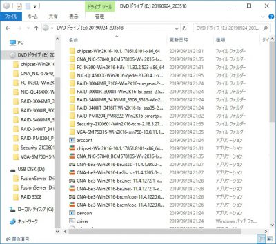 8)onboard driver Win2016のディスクイメージファイルをダブルクリックしますと仮想DVDが動き、展開されます。