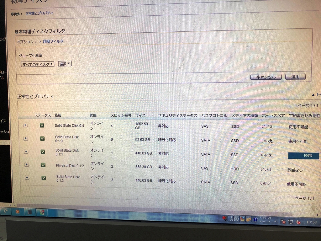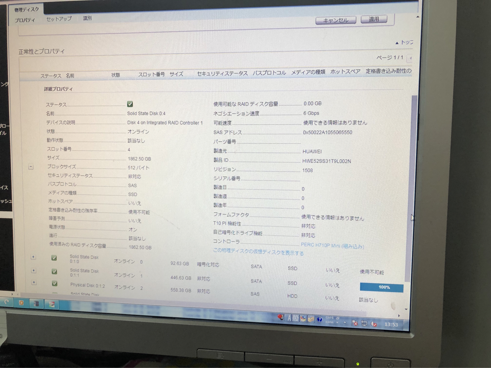 結論としては、DELLのPERC上ではHuawei SAS SSDは認識し動作も出来るが、本体側ではエラー表示を行ってしまう事になります。