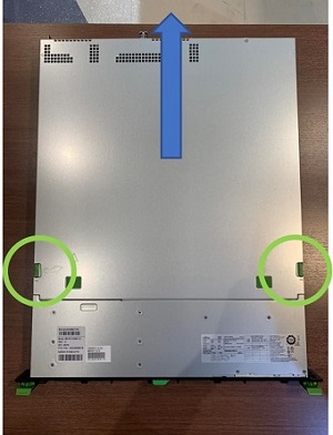 ※ この時、引き抜く方向は、サーバ設置面に対して反対方向です。