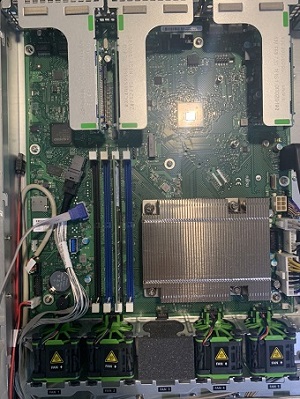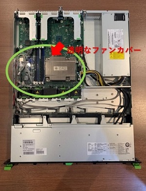 最後に、透明なファンカバーをつけて、ラックサーバの蓋を付けたら作業完了です。