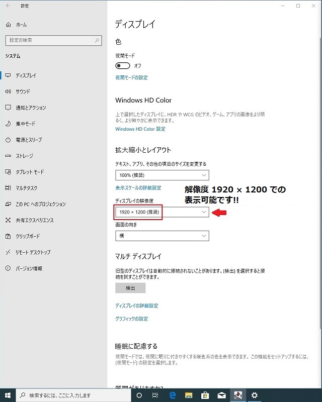 1920 × 1200表示可能なモニタに接続し、表示確認出来ました!!