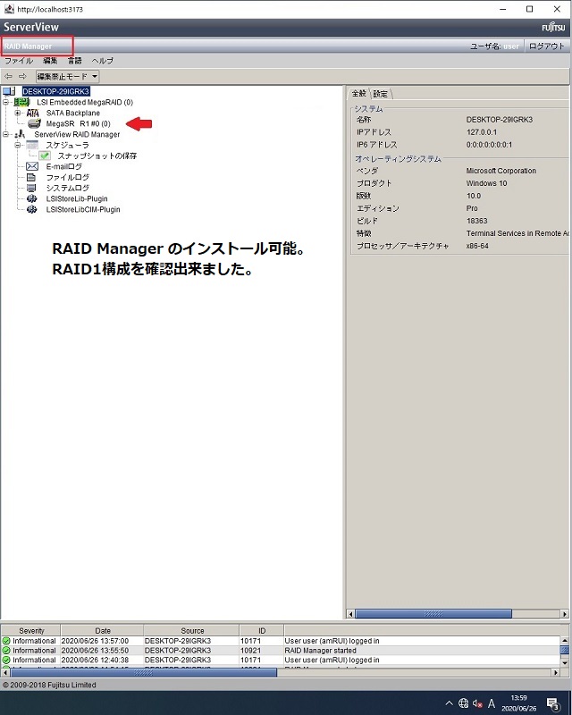 RAID Managerのログイン時にユーザーIDとパスワードの入力が必要になります。