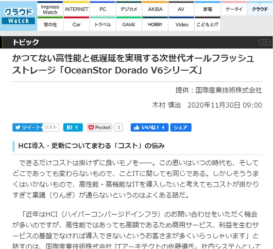 また先日、クラウドWatch様にも弊社での製品取り扱い記事を
