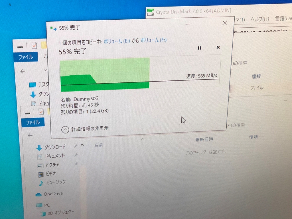 ②SAS 12Gb/s接続のJ2012へ50GBのデータを転送