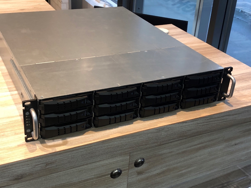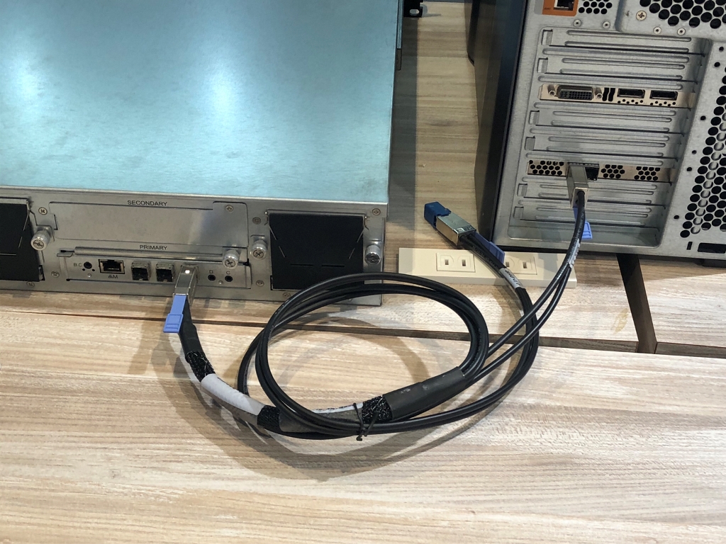 サーバまたはワークステーションに搭載したRAIDカードとSASケーブルで接続となります。