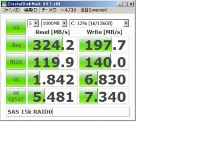 SAS 73GB(15k)x2本でRAID0(WriteキャッシュON)