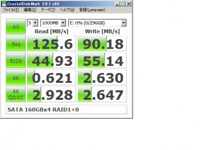 3.5インチSATA 160GB 4本でRAID1+0(WriteキャッシュON)