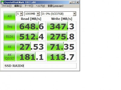 SSDx2本でRAID0