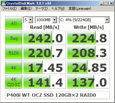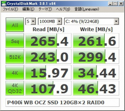 実験2:SSD、RAID P400i Writeキャッシュ ON、RAID0