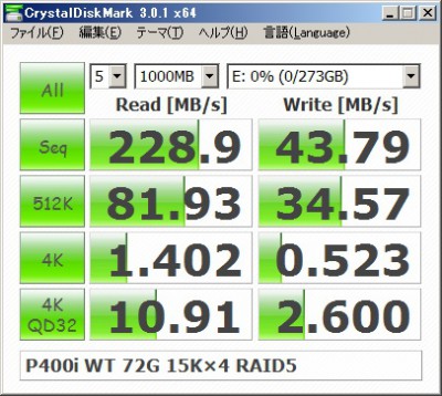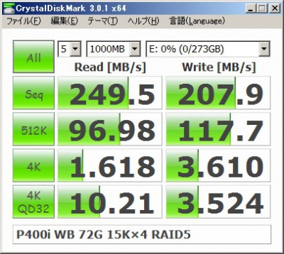 実験4:SAS、RAID P400i Writeキャッシュ OFF、RAID5