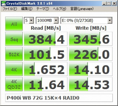 実験5:SAS、RAID P400i Writeキャッシュ ON、RAID0