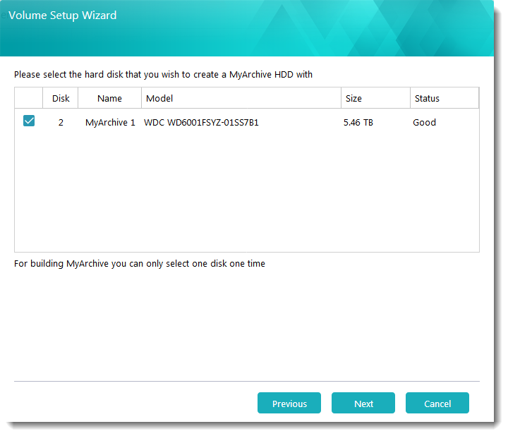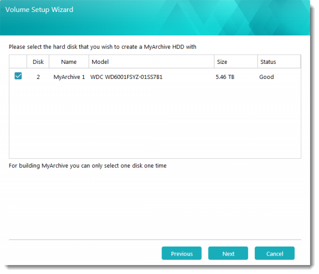 - MyArchiveハードドライブを作成するハードドライブを選択します。