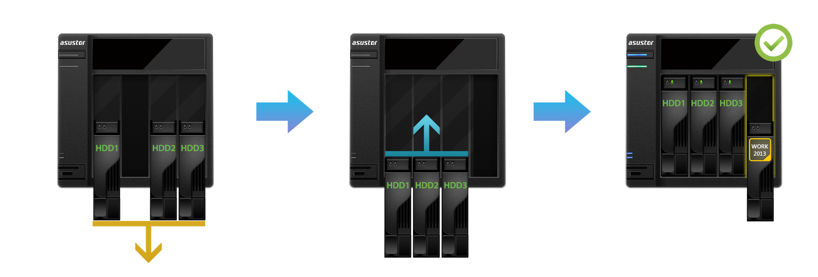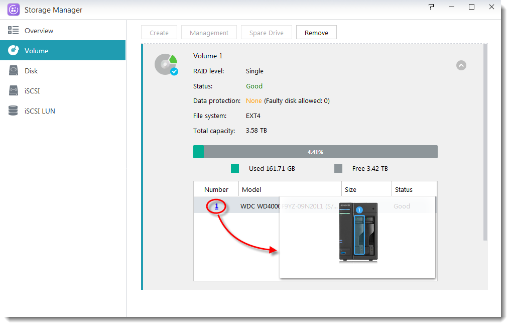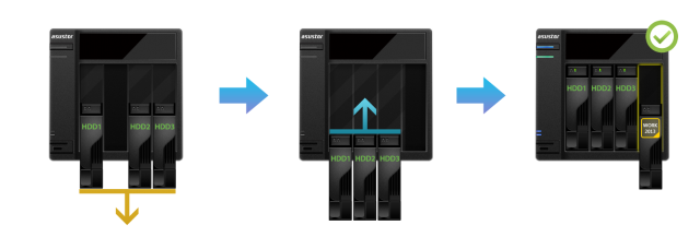 注: MyArchiveディスクベイが依然としてハードディスクに占有されている場合、その後の手順については、 2.1 NASの他の空のディスクベイを利用できる場合 セクションを参照してください。
