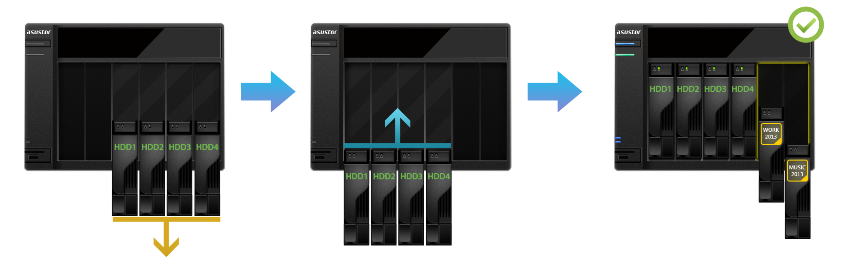 このシナリオでは、ディスクベイを解放し、MyArchive機能を使用する目的でNASを再初期化する必要があります。