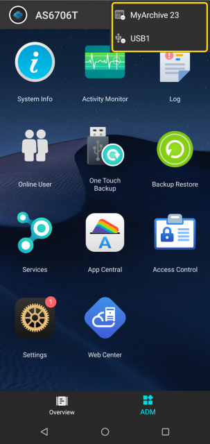 - NAS 242:AiMasterを使用するを参照して AiMaster をインストールし、MyArchive をマウントした状態で NAS にログインしてください。