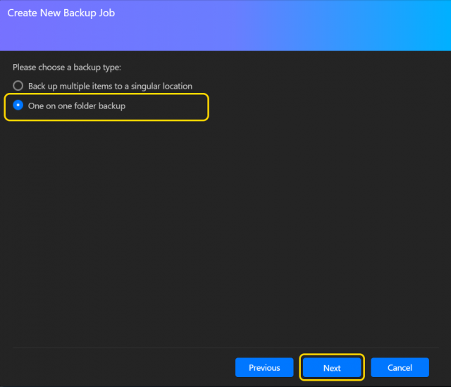 1対1のフォルダバックアップを使用する場合は、ここで追加のオプションも表示されます。