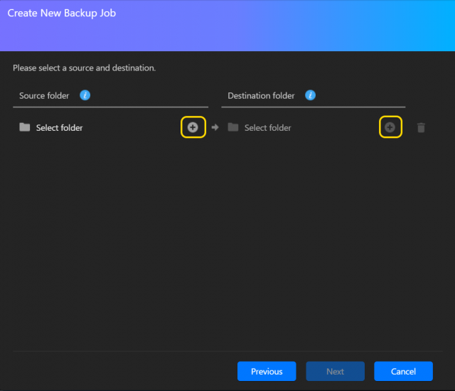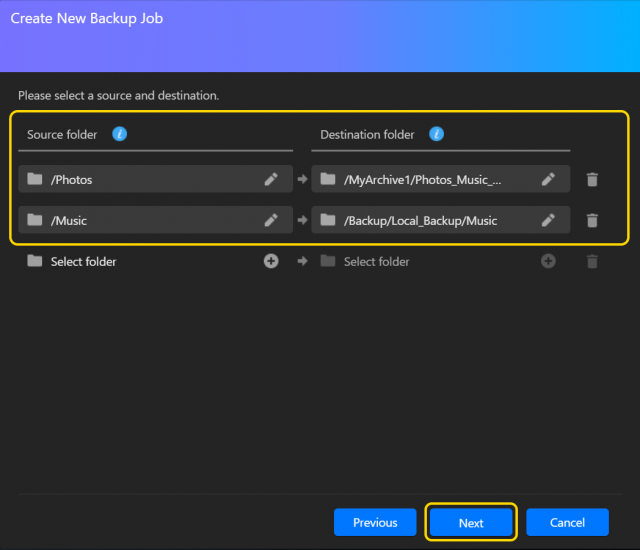 - 1つのバックアップジョブでバックアップする複数の1対1フォルダをここで選択します。(ADM4.2.5での新機能)