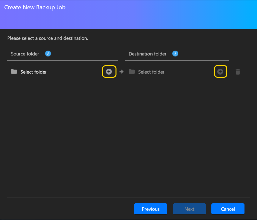 - バックアップするソースフォルダまたはファイルを選択し、[次へ]をクリックします。