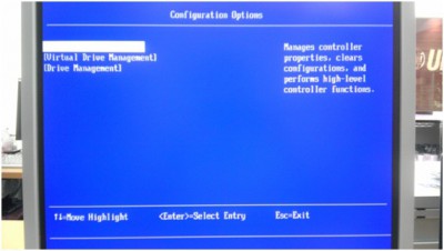 白文字反転で良く見えませんが、RAIDのマネージメント画面に入るための項目が表示されていますので、Enterを押下して次の画面へ進みます。