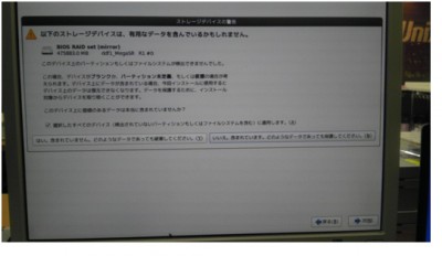 やはりWindowsを主なターゲットとして作られているServeRAID C100(LSI社製オンボードディスクアレイ機能)は、Linuxディストリビューションに対応出来ずにディスクへの書き込みに失敗してしまうようです。