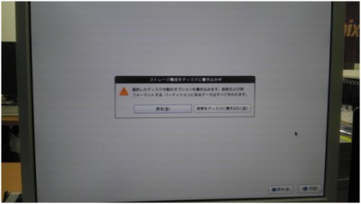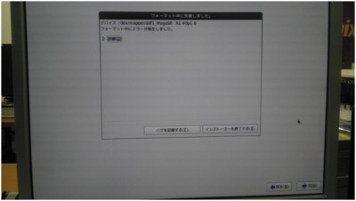 しかし、上記の画面で「変更をディスクに書き込む」を選択すると、以下のような画面となってインストールが中断してしまいます。