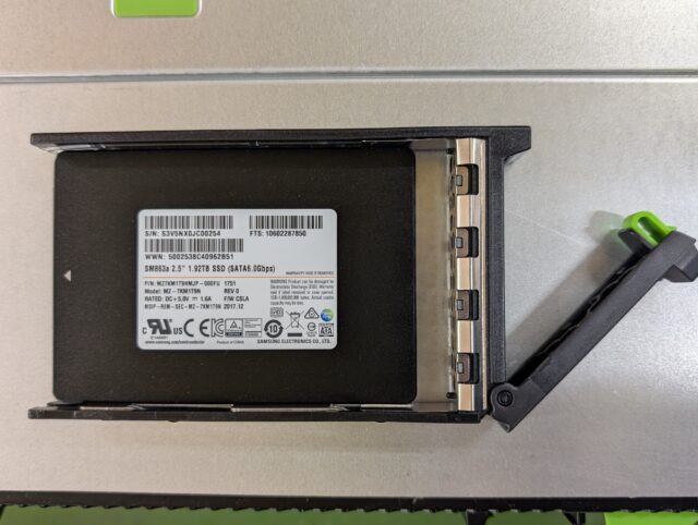 実際に弊社の富士通サーバから純正型番のSSDを取り出してみましたが、SamsungのSSDが入っていました。